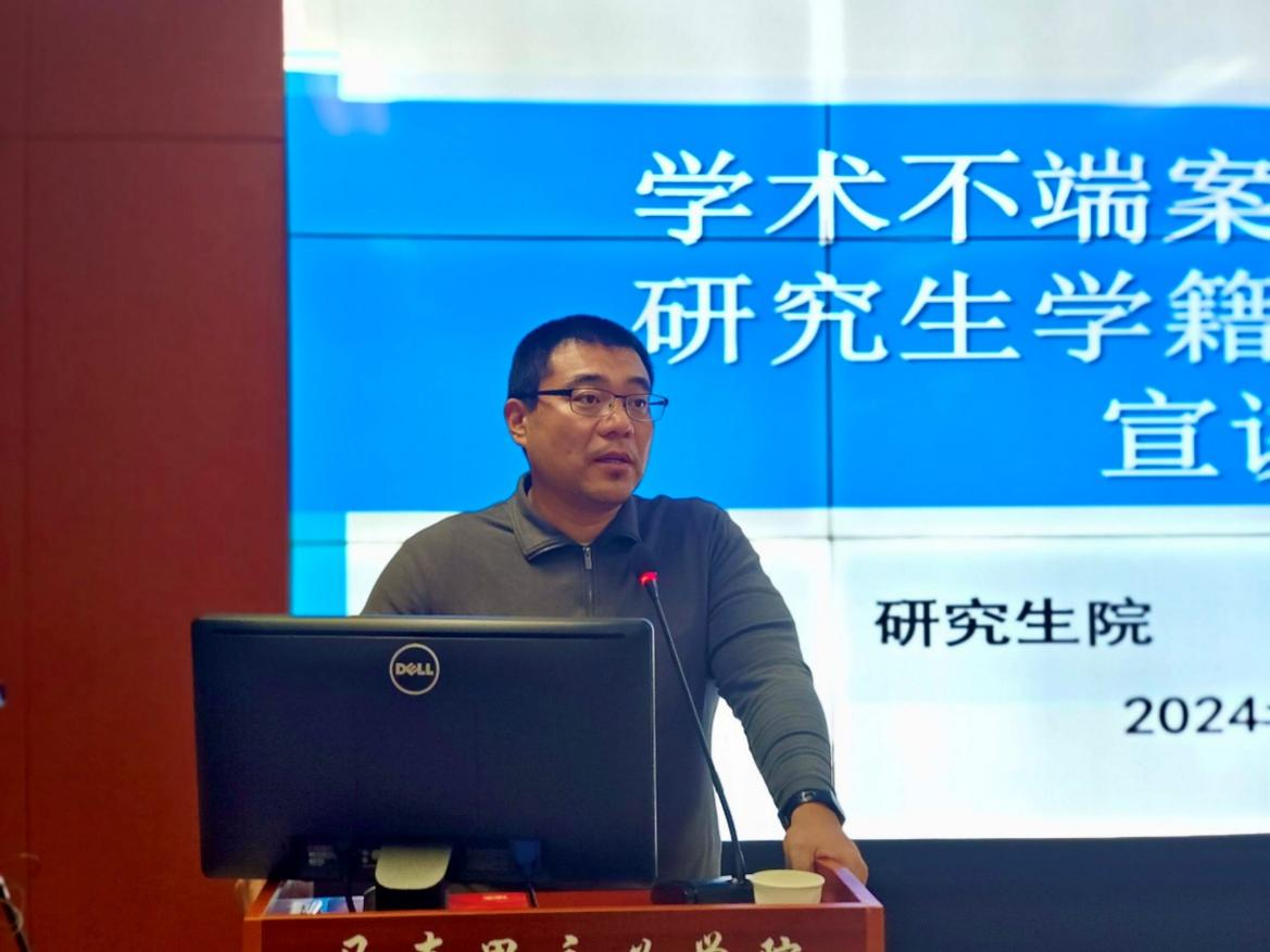 11月7日晚,我院在学术报告厅召开预防学术不端行为暨学校研究生学业管理政策解读会议。本次会议由研究生院王全伟老师主讲,2024级全体研究生参加。