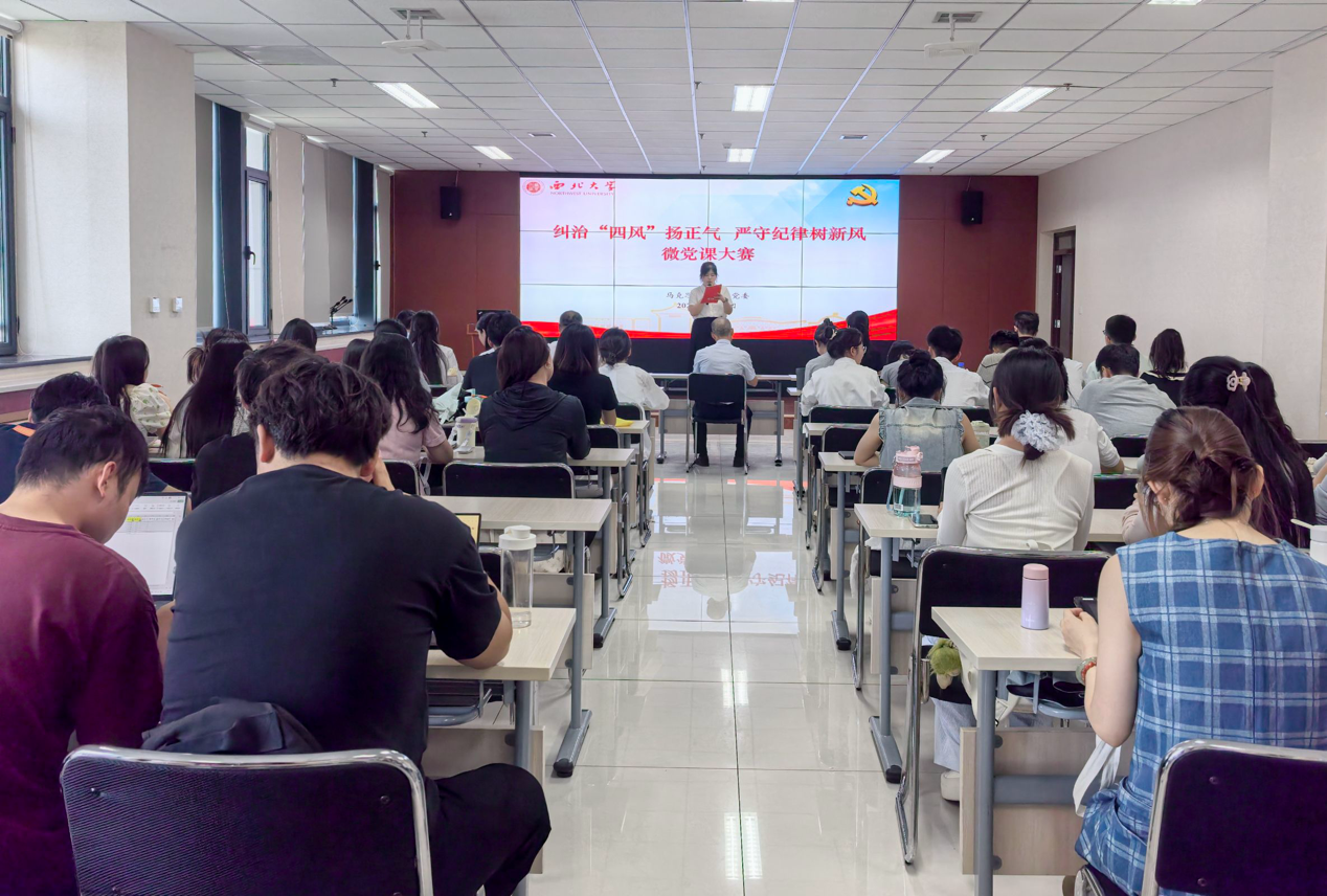 5月28日下午,我院在学术报告厅举办“纠治‘四风’扬正气,严守纪律树新风”微党课大赛。院党委书记韩凯峰,院长何博,院党委副书记邵平,中国近现代史纲要教研部主任苟昭赟和学院党务工作人员担任比赛评委。学院2023级、2024级硕士研究生观看了比赛。