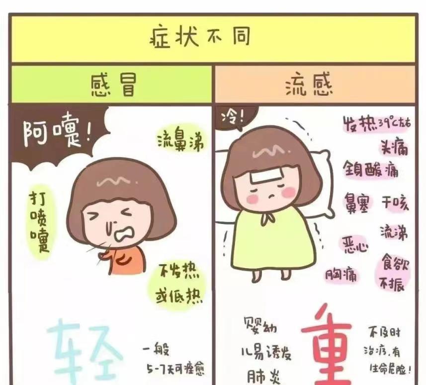 流感与普通感冒相比,传染性强,症状也更严重,感染流感病毒后通常鼻塞、流涕、打喷嚏等上呼吸道症状较轻,而高热、头痛、乏力等全身中毒症状较重,且发病后可出现肺炎、心肌炎、中耳炎等并发症。