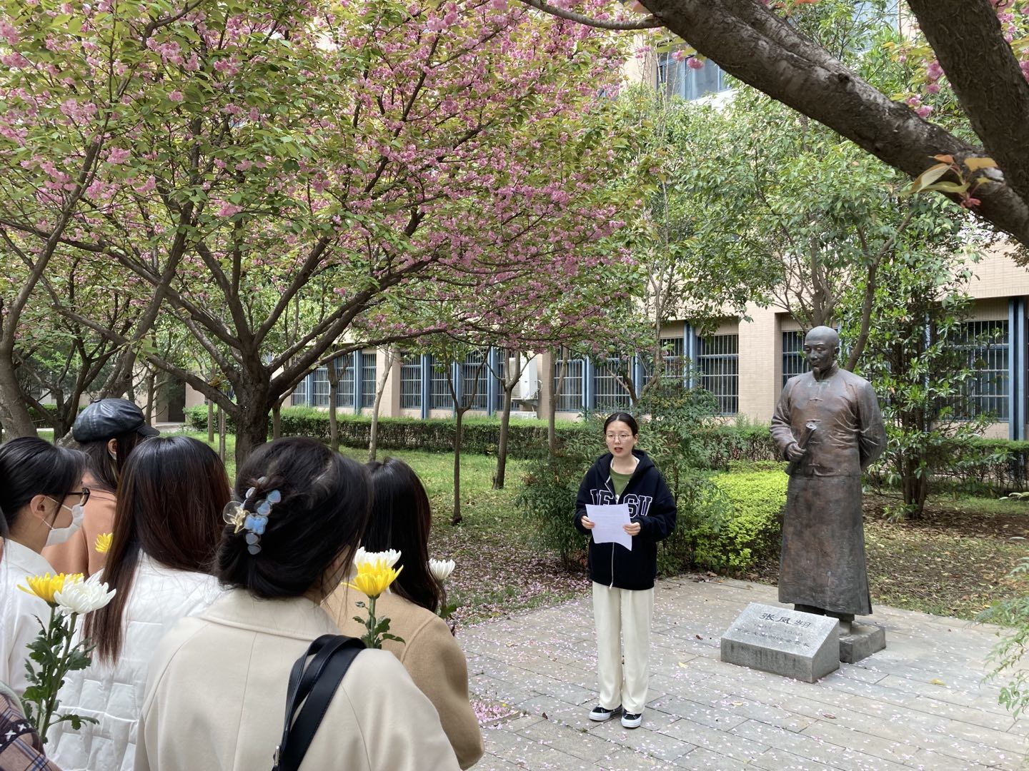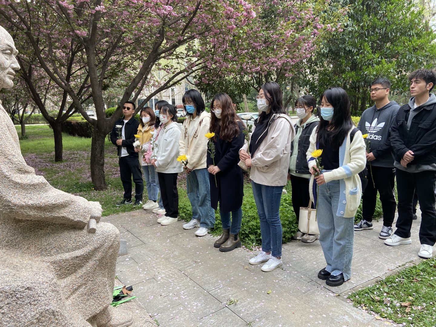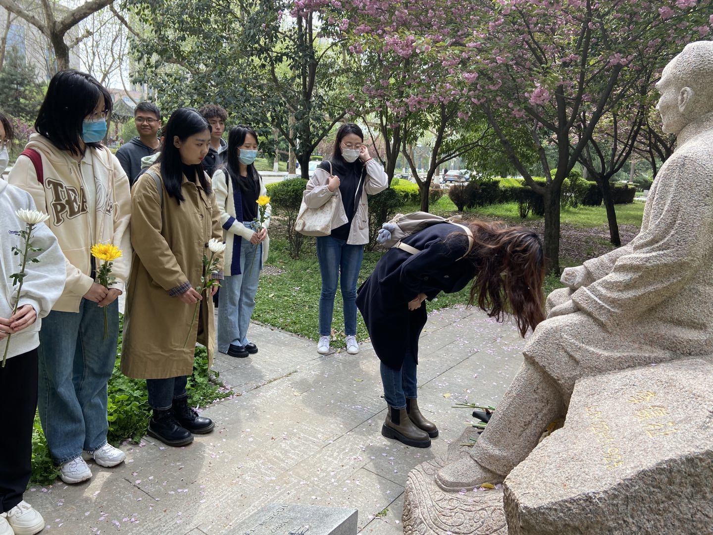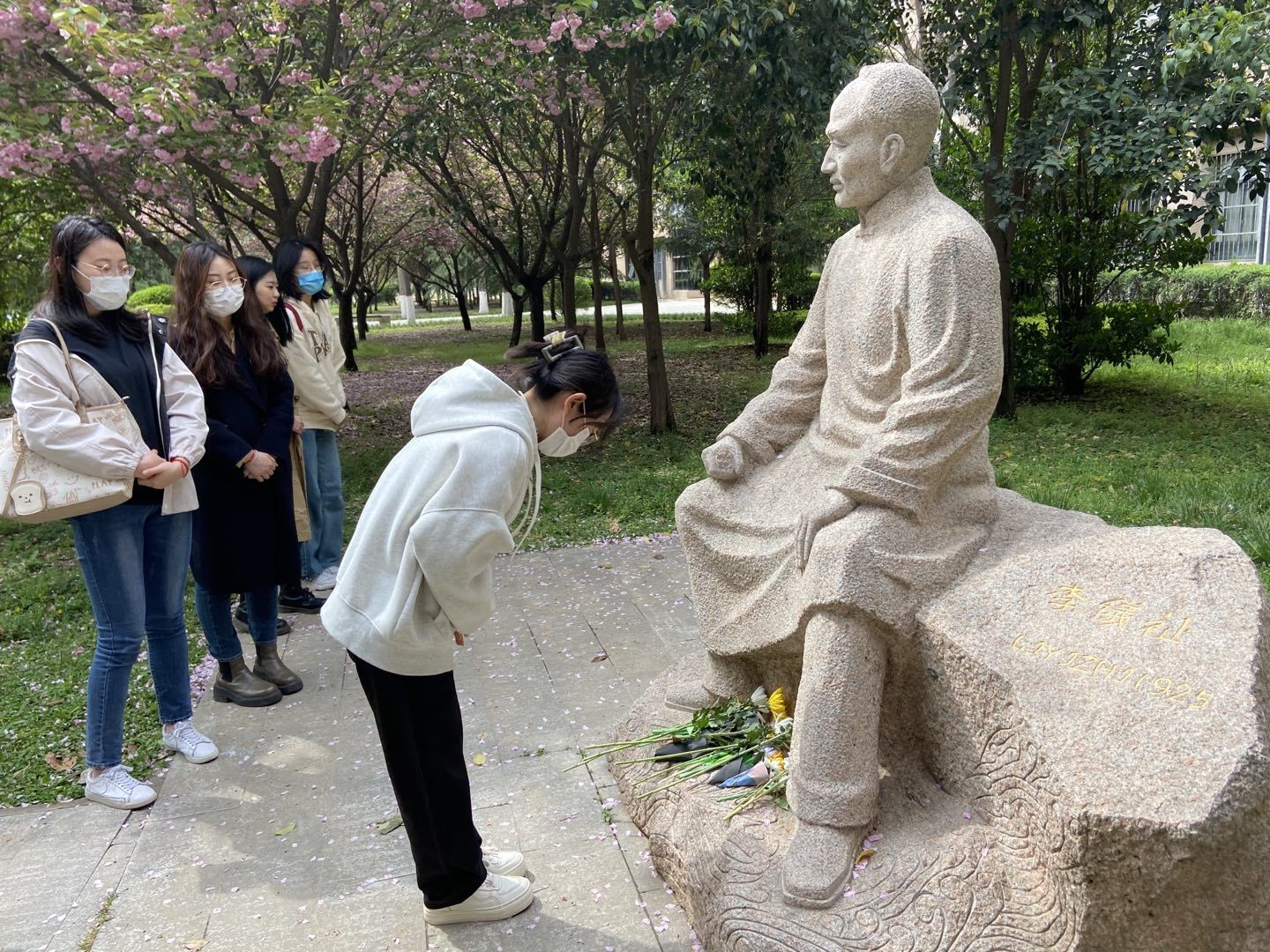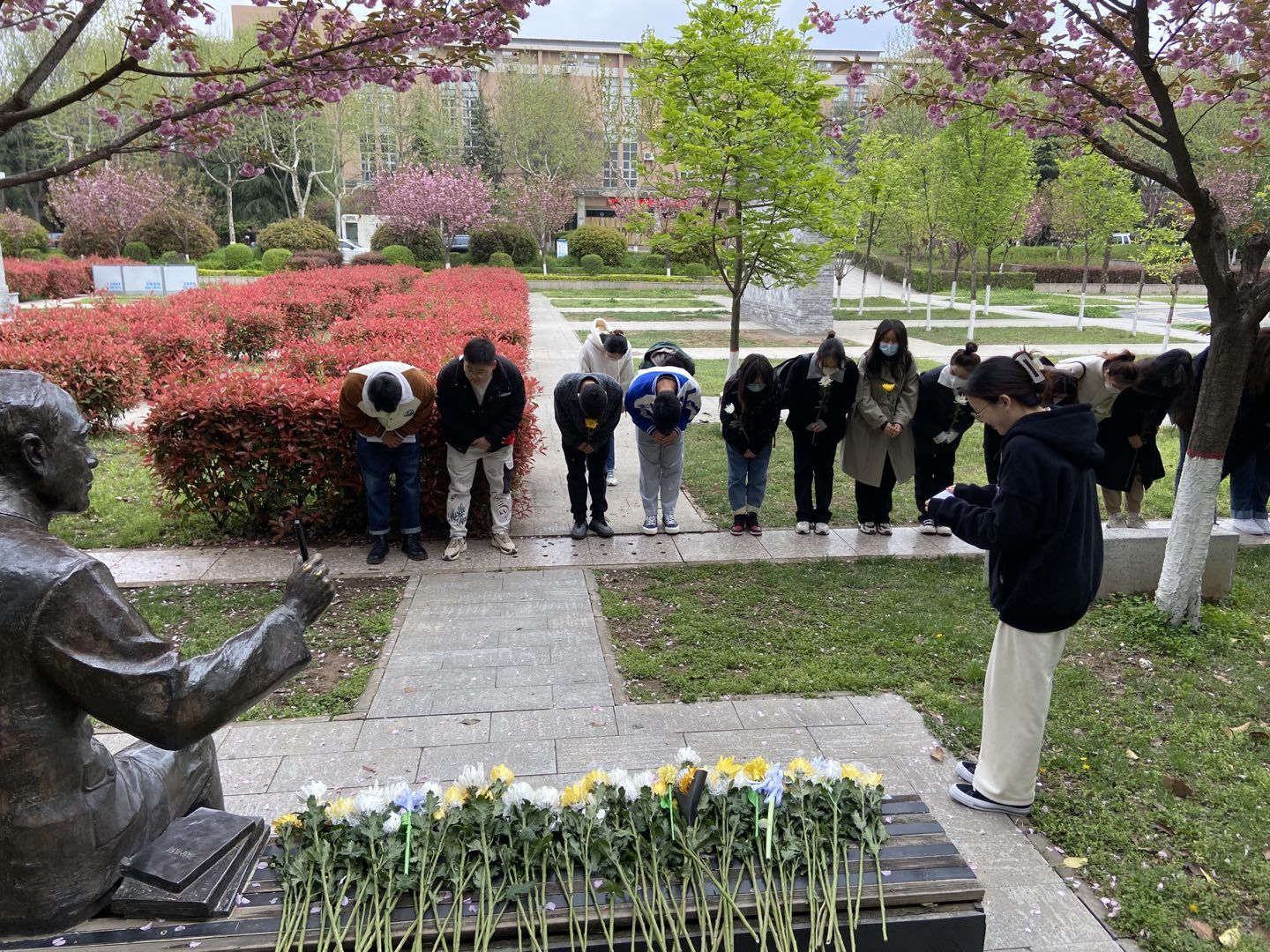 4月4日下午,马克思主义学院开展“ 缅怀革命先烈 传承红色基因”清明节祭英烈活动。各党支部、团支部、“红桅杆”思政理论学习社团及2022级全体研究生前往侯伯宇先生、李仪祉先生和张凤翙先生的雕像前深切缅怀西大先贤。