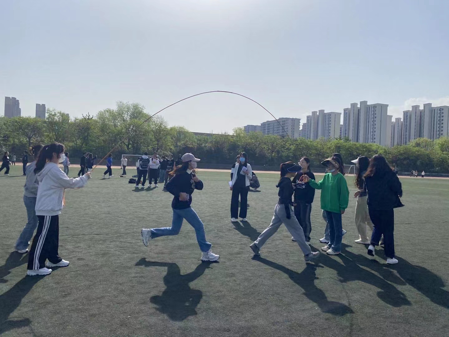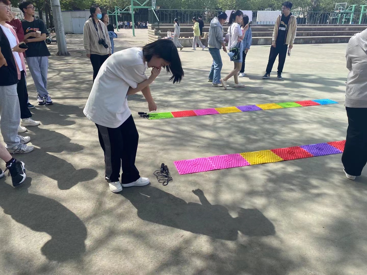 本次趣味运动会包括集体跳大绳、齐心协力、同舟共济、摸石过河、篮球九宫格、青春加速度六个集体项目。