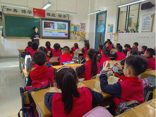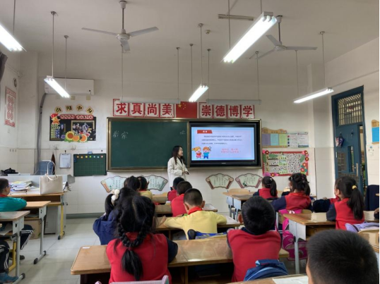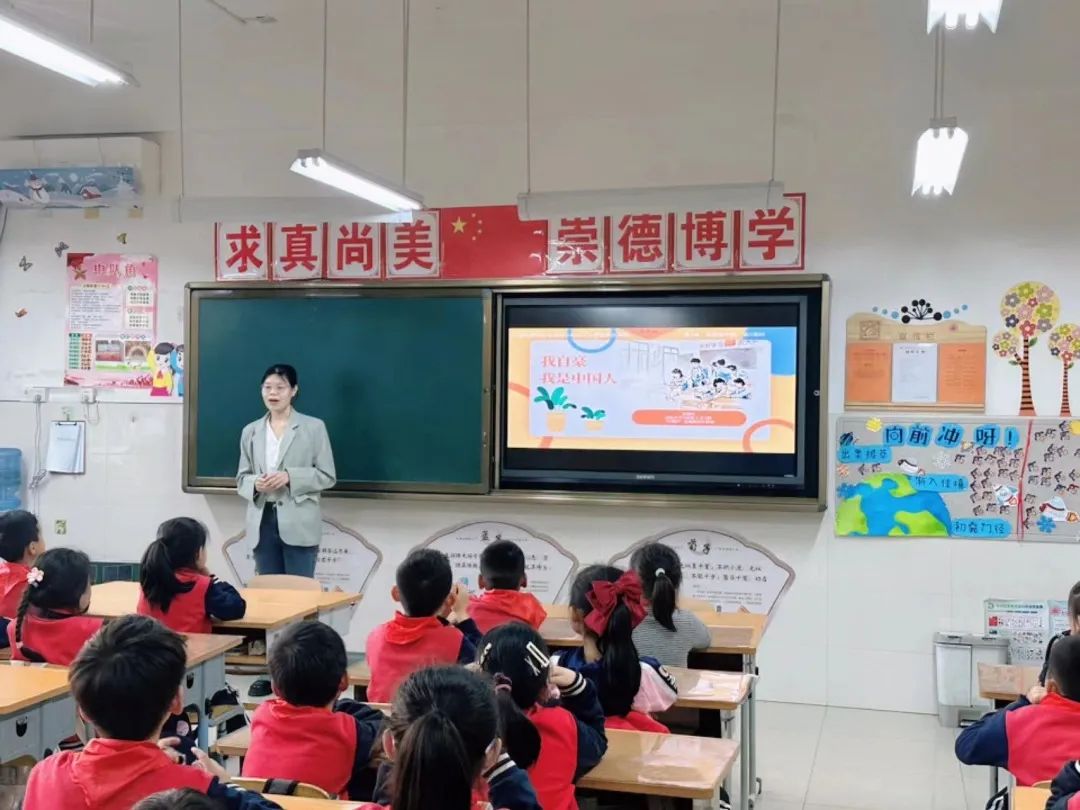刘莹在以《美丽中国是我家》为主题的讲解中,通过图文和视频的方式向同学们介绍了中国的全称、认识了中国的地图、国旗、国徽和国歌,在轻松的课堂氛围中加深了同学们对祖国的了解,增强了民族认同感和自豪感。