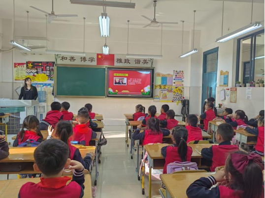 周南以《习近平爷爷心系人民群众》为主题,通过讲解习近平同志在基层鲜为人知的故事,了解以习近平同志为代表的中国共产党人始终不忘初心,全心全意为人民服务的精神,增强同学们对中国共产党的热爱之情,做合格的社会主义建设者和接班人。