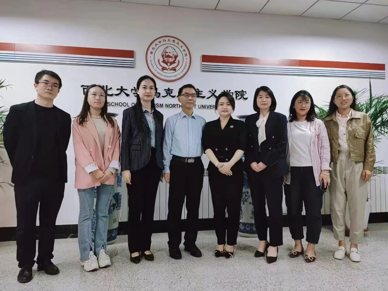 丁莹莹为张玫颁发西北大学学生就业创业指导教师聘书,邵平为张玫赠送纪念品。