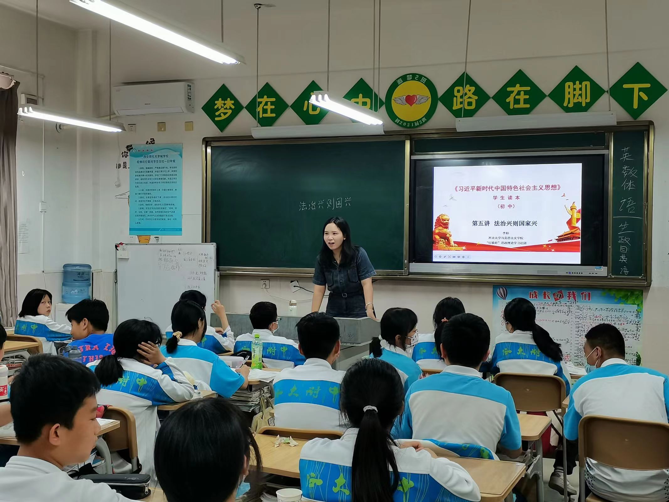 李婷以《法治兴则国家兴》为主题,向我们讲述了中国法律的发展历程,以奉法者强则国强和密织法律之网,强化法治之力两方面内容展开讲解。通过这堂思政课的讲解,青少年应增强法律意识,要自觉尊法学法守法用法,提高法治素养,做遵纪守法的现代公民。