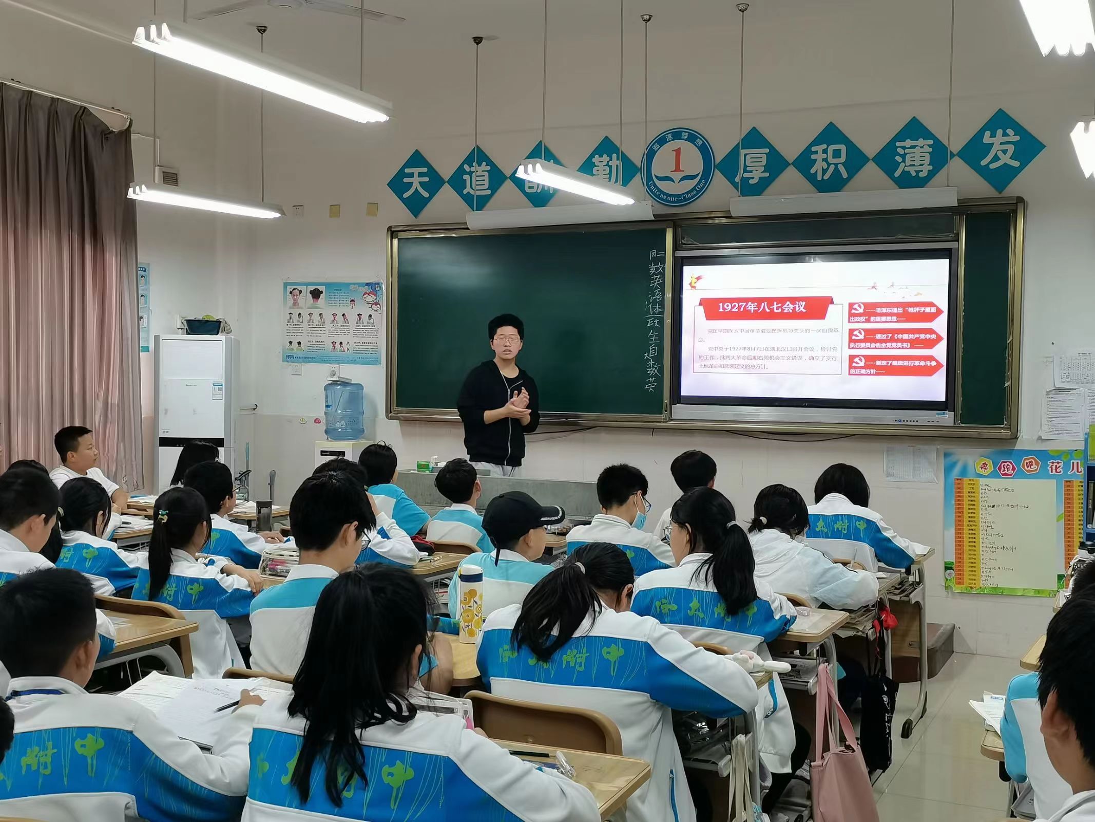 6月6日,我院“红桅杆”思政理论学习社团在长安区西北大学附属初级中学开展“思政宣讲进课堂”。社团成员以《习近平新时代中国特色社会主义思想学生读本》为主要内容,在七年级的两个班级中进行了思政宣讲。本次主讲人是来自22级中国近现代史基本问题研究专业的硕士研究生芮少辉和22级思想政治教育专业的硕士研究生李婷。
