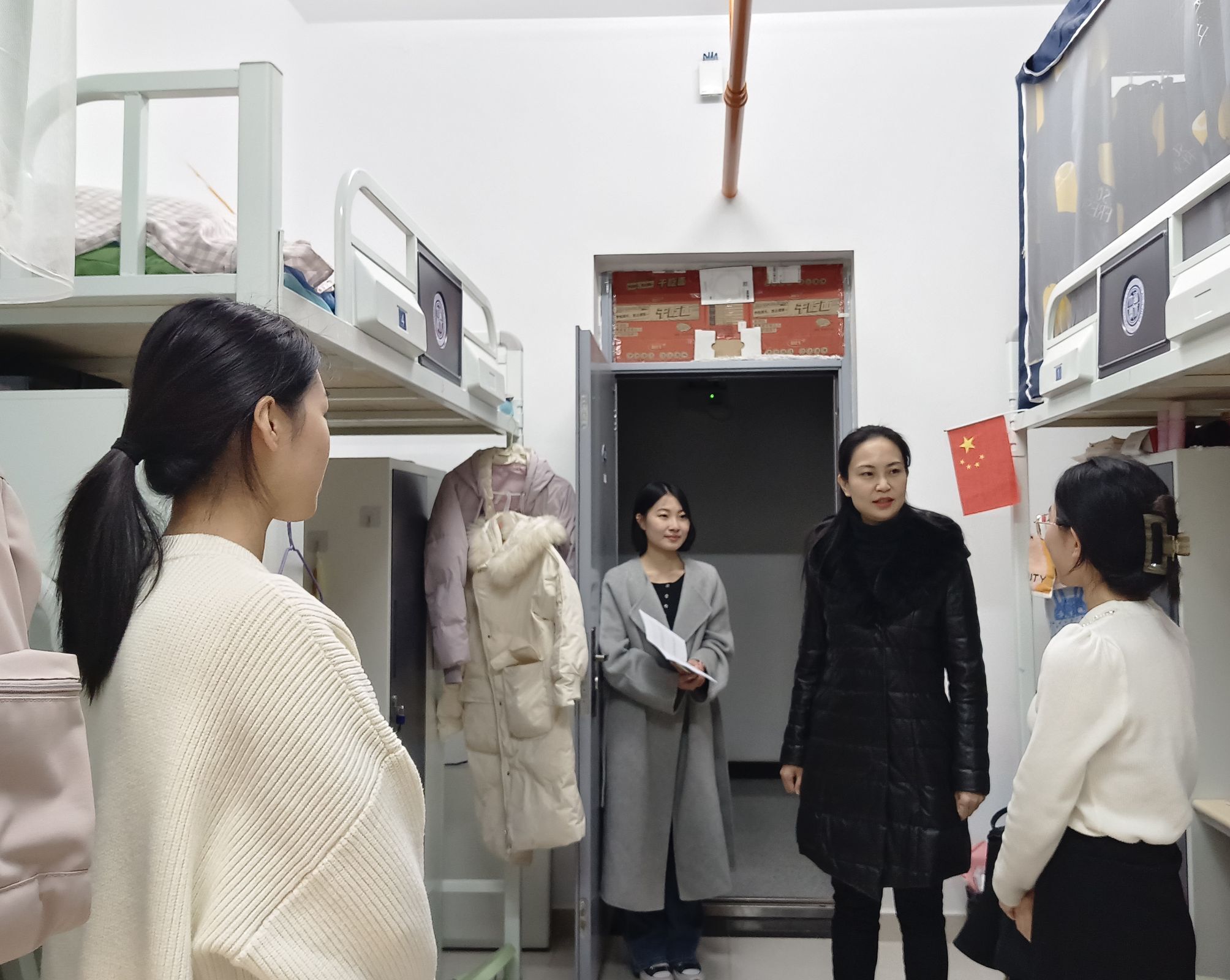 2月25日晚上,院党委副书记邵平、兼职辅导员邵士博及学工干部一行走访我院学生宿舍。