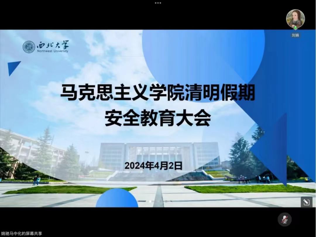 4月2日下午,我院召开清明假期安全教育大会线上会议,我院全体研究生参加此次会议,会议由辅导员刘娟主持。