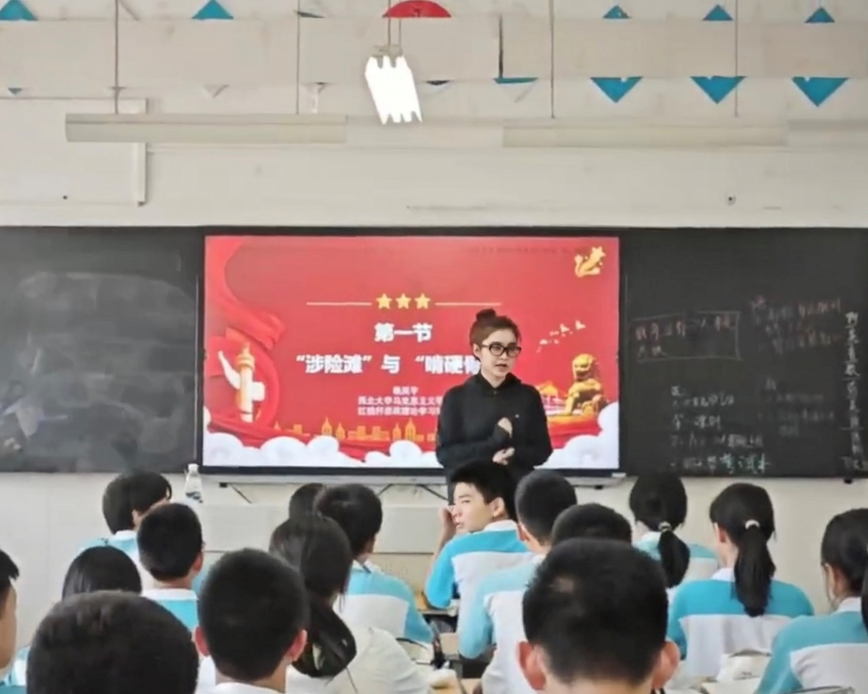 杨岚宇以《“涉险滩”与“啃硬骨头”》为题,讲解了我们国家站起来、富起来、到强起来的过程,通过一个个具有典型性的历史故事,号召同学们立足于改革开放进入攻坚期和深水区的实际情况,一鼓作气,迈着坚定的步伐走下去。