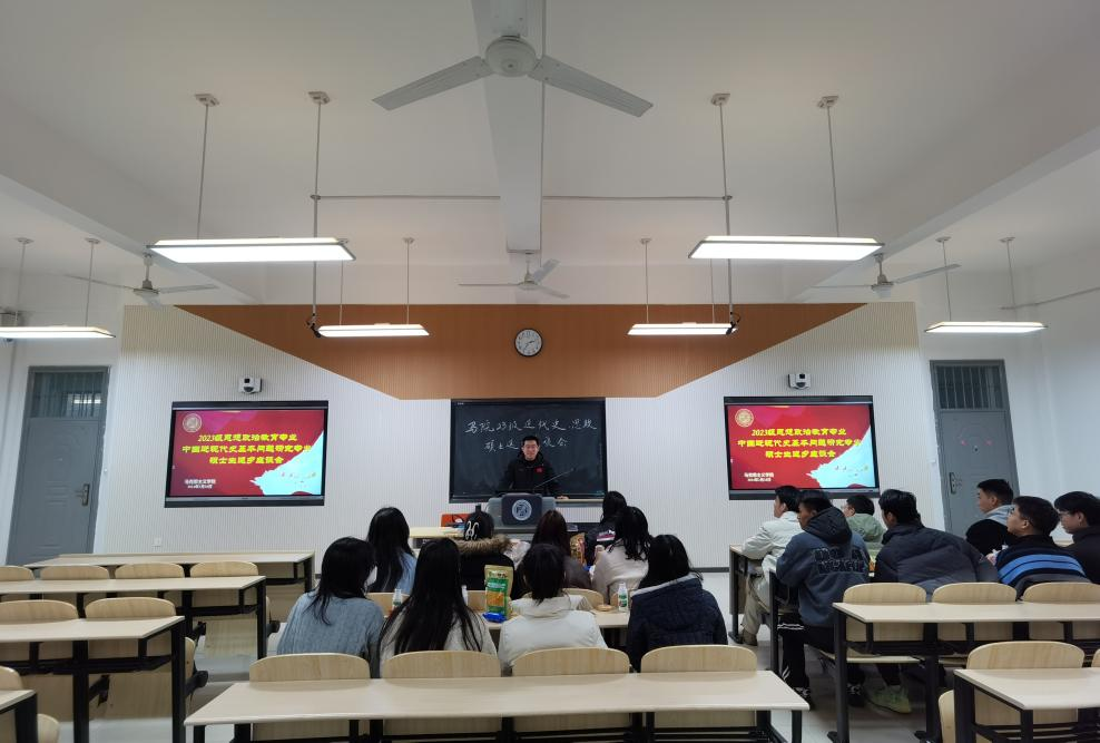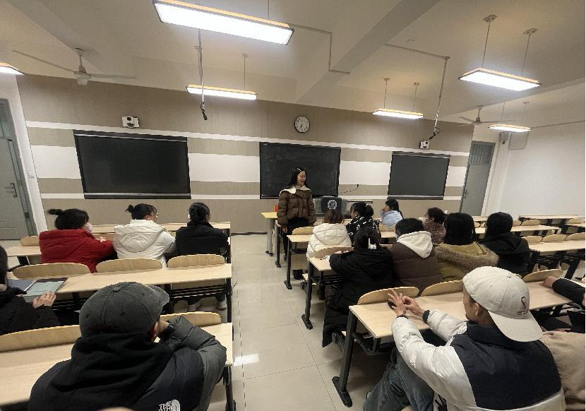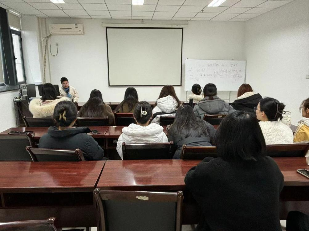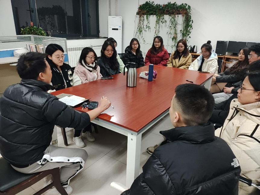 郭莹老师询问了班级同学们近期的毕业论文以及就业情况。对于思想负担较重的个别同学,她及时进行疏解并提到,在研三的最后一个学期,同学们要以积极乐观的心态客观看待问题,按部就班把握自己的学习和生活节奏,加强自律意识,对自己的学习生活要有明确的规划,找准发展目标和定位并从自身实力出发去择业。