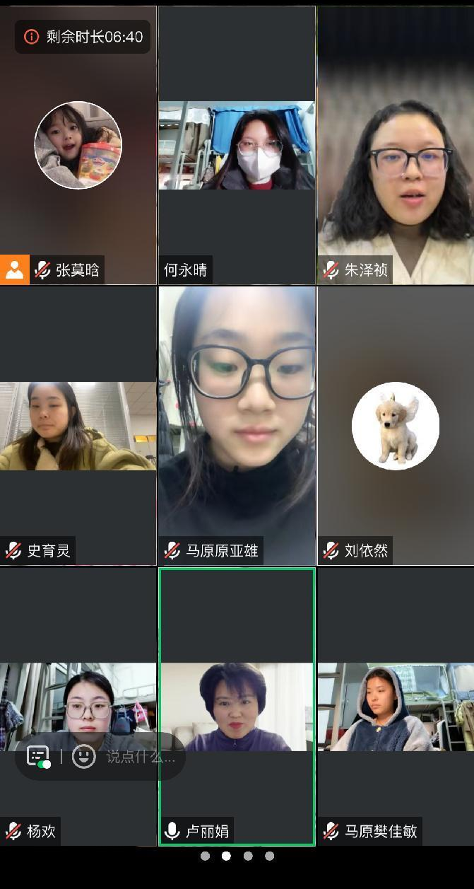 马珂琦老师着重了解同学们的就业情况,与同学们交流过程中讲述了自身的学习生活经历并分享感受,在询问同学们的毕业论文完成情况后,给大家提供了合理安排学习与求职时间、有效提高效率的一些方法,鼓励大家争取把碎片化的时间利用起来。同时,希望同学们积极应对困难和挫折,主动掌握自己的生活,提高情绪管理能力。