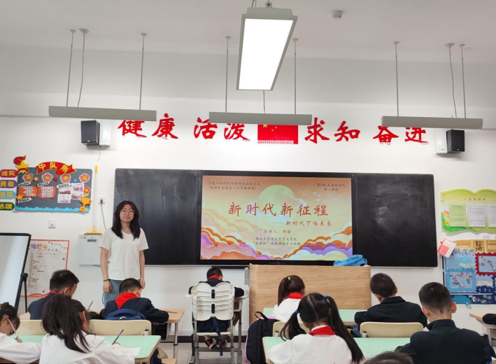 4月22日,我院红桅杆思政理论学习社团在西安市长安区第一小学实验小学,以《习近平新时代中国特色社会主义思想学生读本》(小学低年级)为主要内容,为二年级的小学生讲授思政课。主讲人分别是来自2022级和2023级的马克思主义基本原理、马克思主义中国化研究、思想政治教育与中国近现代史基本问题研究专业的12位硕士研究生。