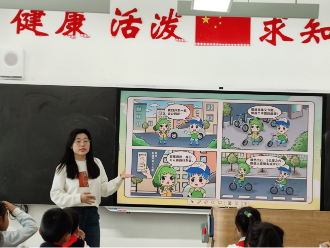 马雪凝以《新时代新生活》为题,展示了不同时期人们生活的方式,让同学们感受新时代的生活变化。呼吁同学们,作为国家的小主人公,要做到学做并行,以昂扬的姿态与时代进步同行。