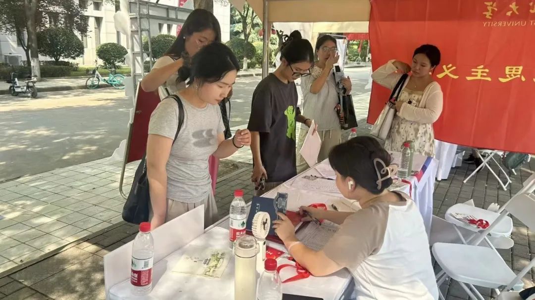 迎新志愿者们早早地等候在北门、南门以及迎新报到点等每一处新生可能需要帮助的地方:帮忙提随身行李,指引报到的方向,耐心解答各种疑问。在报到现场,志愿者们耐心地引导新生完成各项手续,细心地讲解注意事项。他们的耐心和细心,将“以家人之名”向新生们传递温暖与热情。