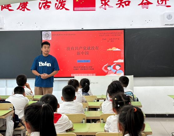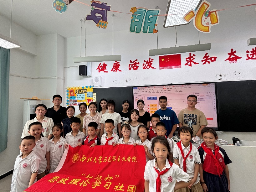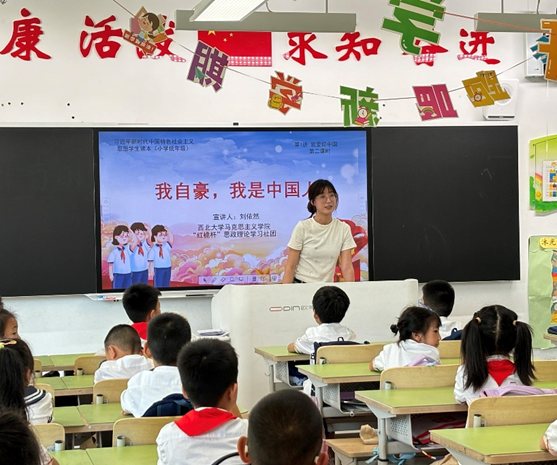 9月18日,我院红桅杆思政理论学习社团在西安市长安区第一小学实验小学,以《习近平新时代中国特色社会主义思想学生读本》(小学低年级)为主要内容,为二年级的小学生讲授思政课。主讲人分别是来自2023级马克思主义基本原理、马克思主义中国化研究、思想政治教育与中国近现代史基本问题研究等专业的13位硕士研究生。
