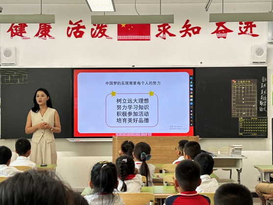 温莉媛以《伟大的中国梦》为题,通过向同学们介绍中国梦的内涵和意义以及实现中国梦的条件,引导学生们树立远大理想、努力学习知识、培育美好品德,为实现民族复兴勇毅前行。