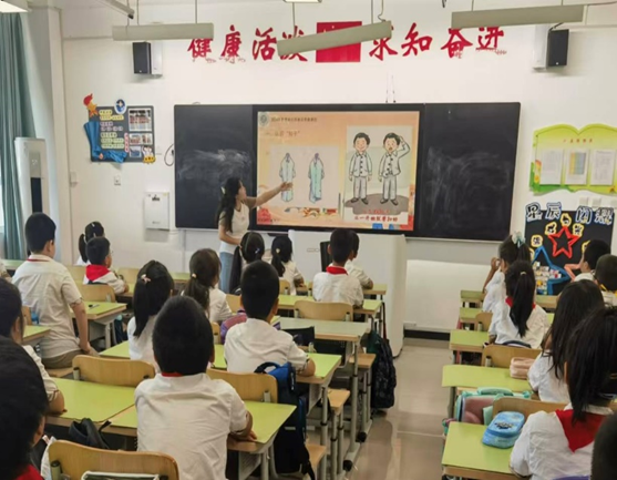 邓喆以《新时代新征程》为题,借助故事向同学们阐述“新时代”的含义,在与同学们的互动之中引出两个百年奋斗目标的具体内容,鼓励他们树立理想目标,认真学习,做新时代好少年。