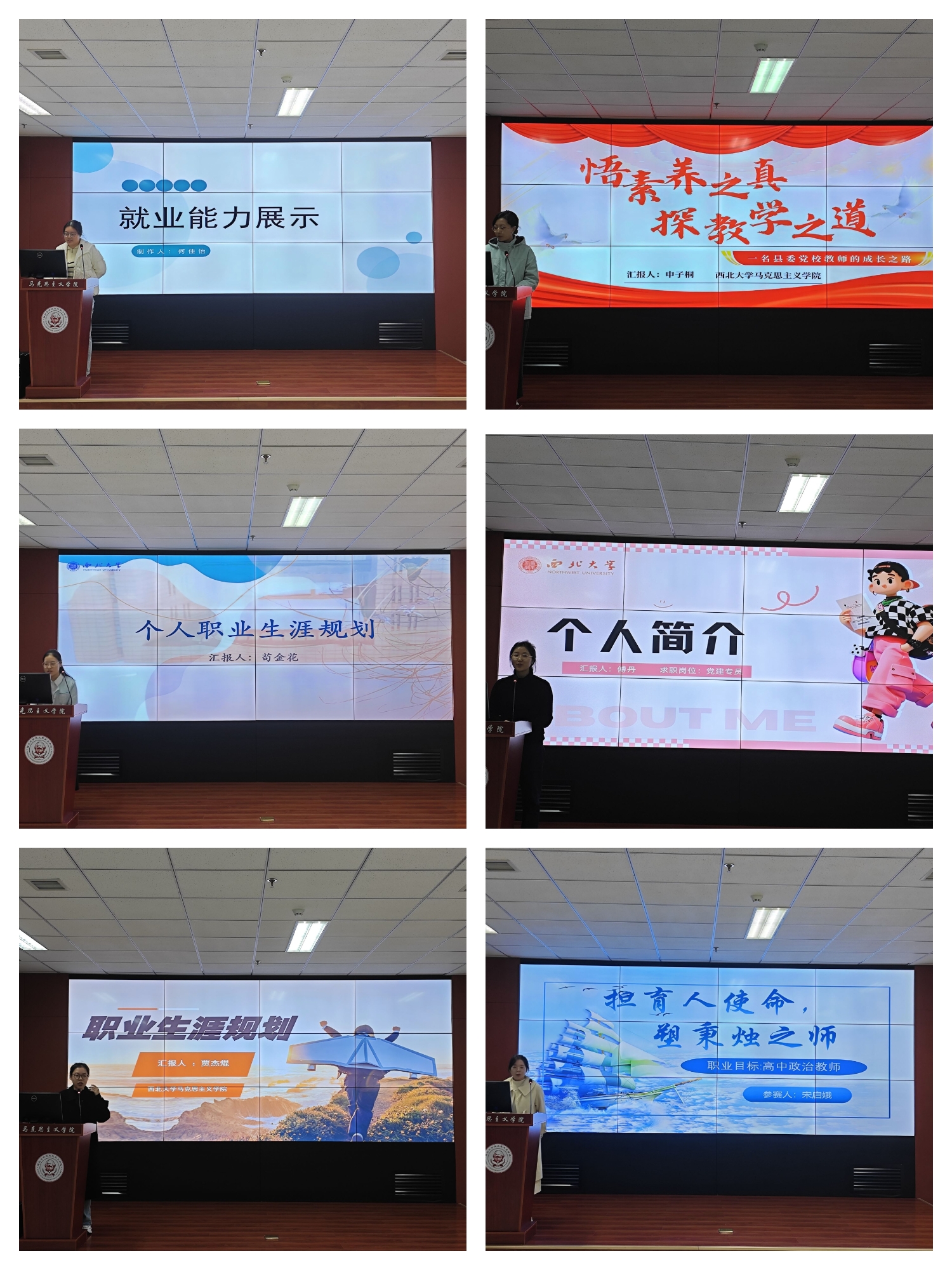 比赛过程中,各位参赛同学通过精彩的 PPT 展示、生动的演讲,向评委们依次阐述了自己的职业目标、自我认知、所获荣誉、实践经历以及职业规划等方面的内容。通过演讲,不仅充分展现了选手们自身扎实的专业知识,而且表明了自身正确的就业观、择业观以及面对未来就业不确定性的灵活应对策略。