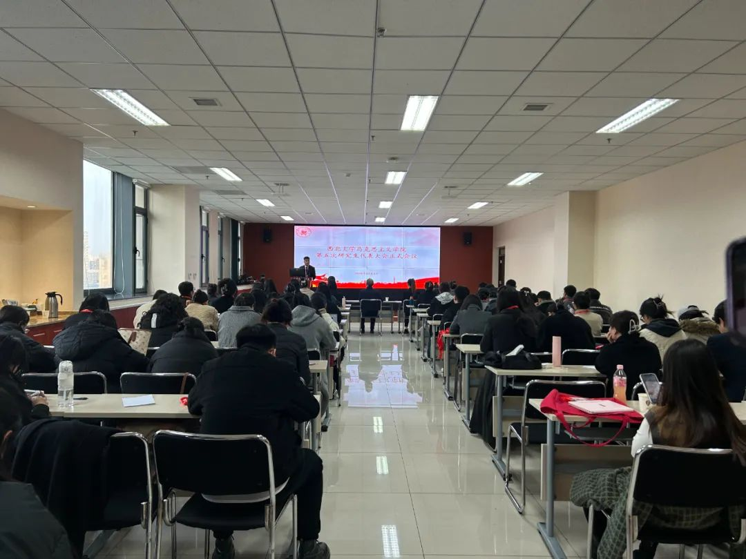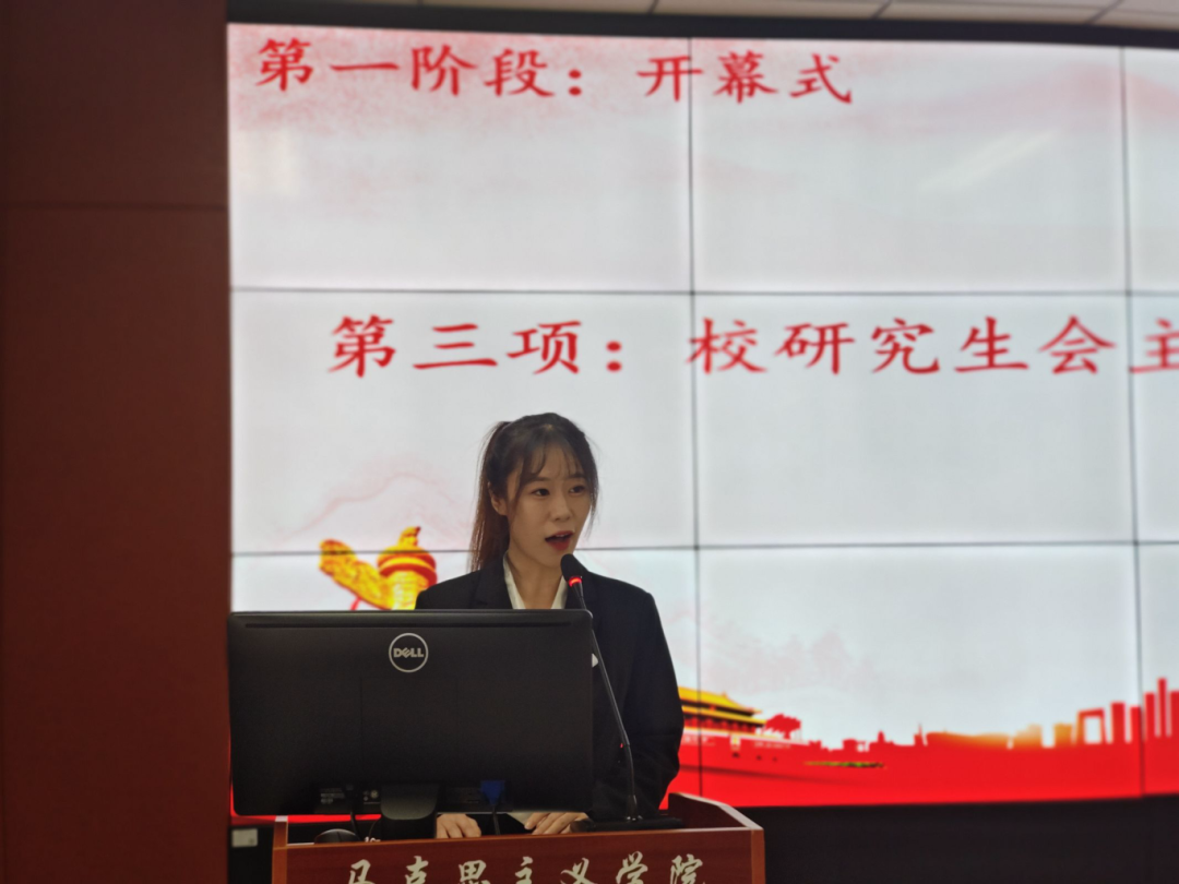 大会伊始,校研究生会主席团成员王璐致开幕词。她表示,此次大会既是对过往工作经验的凝练总结,更是开启新征程、谋划新篇章的关键起点,校研究生会将与马克思主义学院研究生会继续携手为同学们营造良好的成长环境。我院研究生会主席团成员王金富代表学院第四届研究生会作了题为《奋勇拼搏新征程 勇毅前行书华章 团结带领全院研究生在实现中华民族伟大复兴中国梦的进程中绘就新画卷》的工作报告,全面总结了学院关于开展学生工作的经验思考,并作了进一步的目标规划。