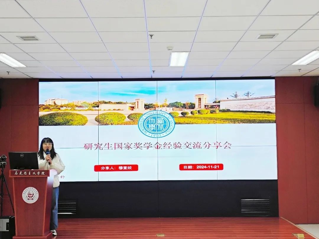 11月21日晚,我院举办国奖经验交流分享会。学院邀请赵凯凯、李旭娟、穆宣姣、孙嘉薇、张馨文五位同学作国奖经验分享,2024级全体硕士研究生参与此次分享会。