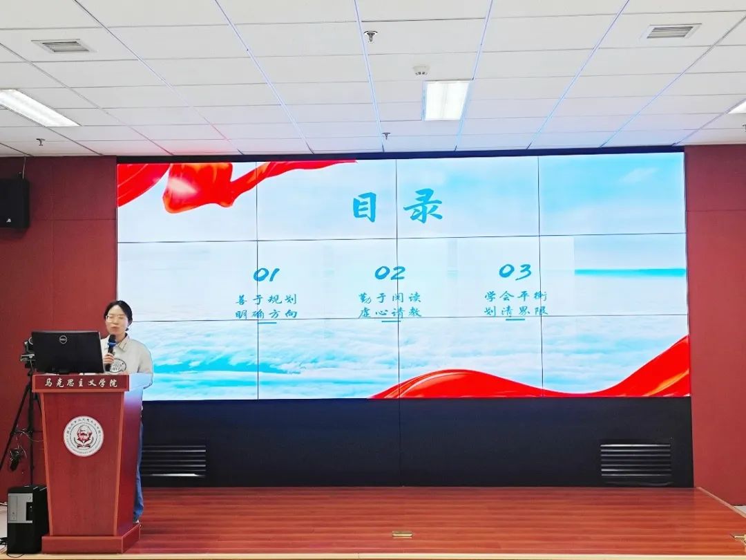 张馨文首先分享了荣获国奖的心得体会,接着建议同学们深入研读国奖政策,并根据自身情况合理规划个人发展路径。最后,她鼓励同学们保持积极向上的心态,携手并进,共同追求卓越。