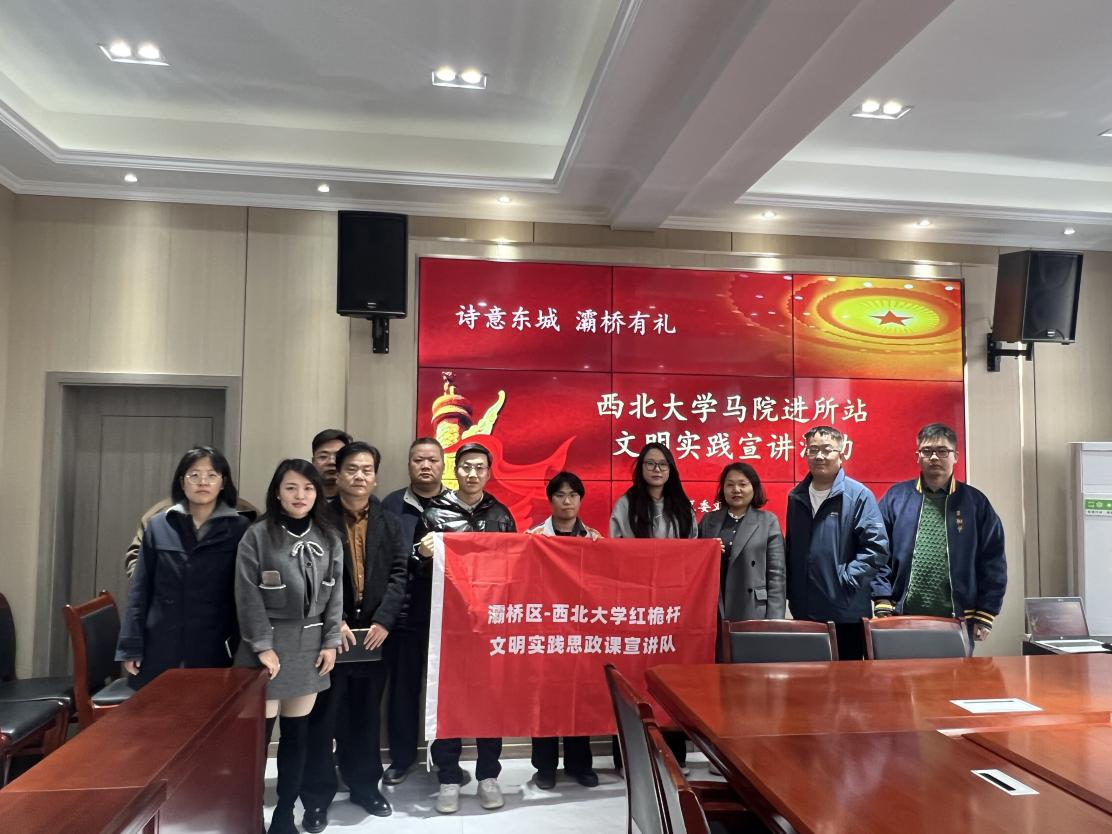 3月12日,我院红桅杆思政理论学习社团前往灞桥区狄寨街道办事处为基层的干部群众开展理论宣讲活动。本次主讲人为2024级思想政治教育专业的硕士研究生李旺盛和马克思主义基本原理专业的硕士研究生魏平方。