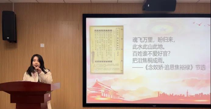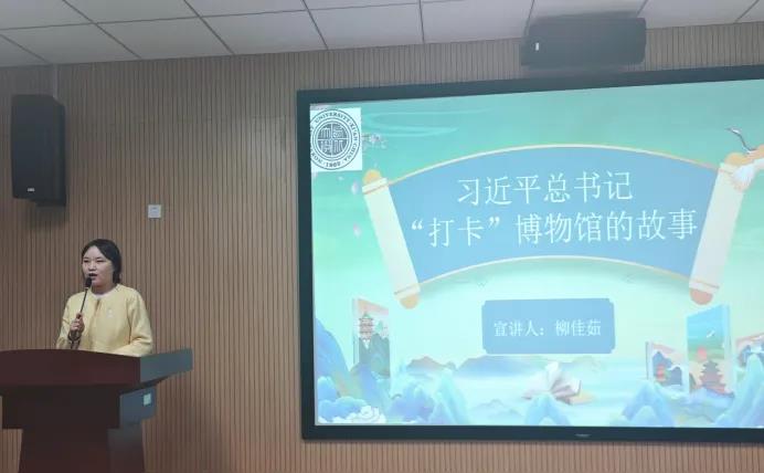 柳佳茹以《习近平总书记“打卡”博物馆的故事》为题,展现了习近平总书记对博物馆及文物保护工作的高度重视,号召广大青年学子要跟随党的步伐,自觉在思想上、政治上、行动上同党中央保持高度一致,传承好中华文脉,担负起新时代新的文化使命。