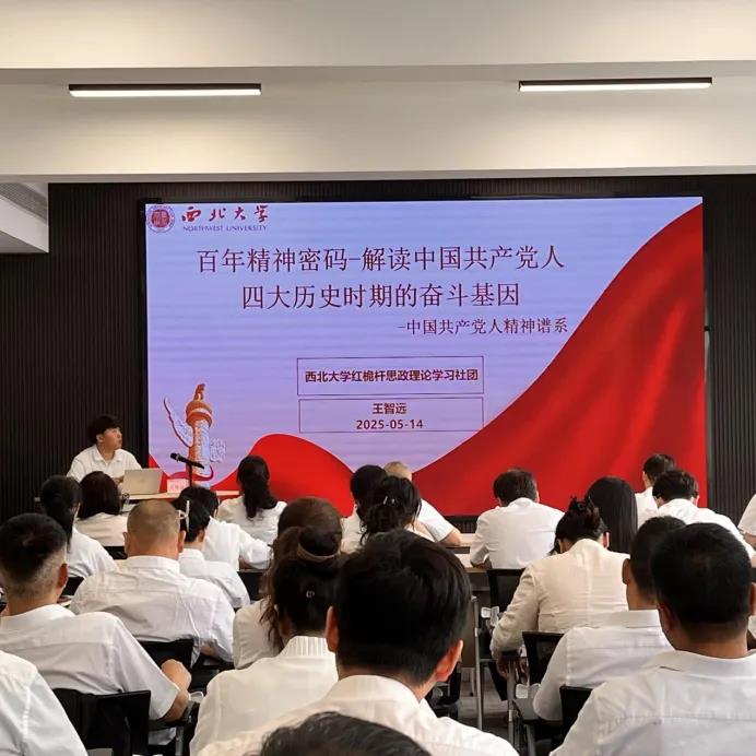 5月14日,我院红桅杆思政理论学习社团在中国铁路西安局集团有限公司为其发展对象开展理论宣讲。本次活动的主讲人是来自2024级马克思主义中国化研究专业的硕士研究生王智远、马万博和思想政治教育专业的硕士研究生熊丽娜、李旺盛。