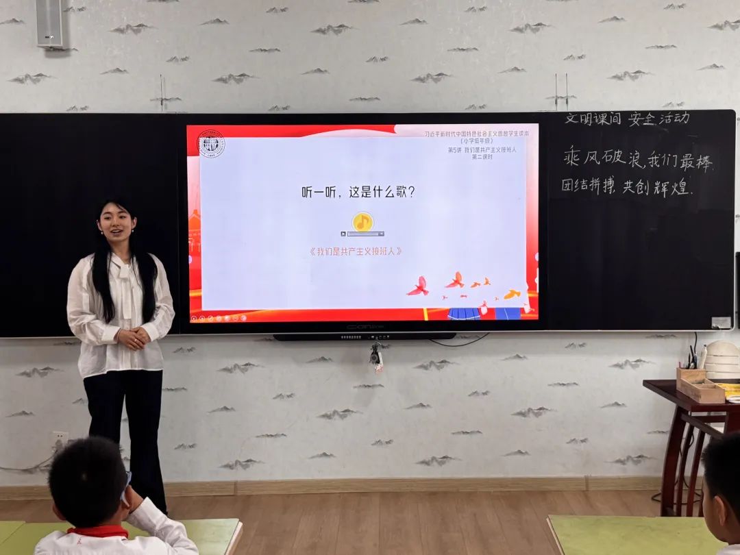 杨姣以《我爱你中国》为题,深入讲解国旗、国徽、国歌的历史底蕴与精神内涵,强调爱国主义不仅体现在对祖国山河的热爱,更要落实在日常生活实践中。