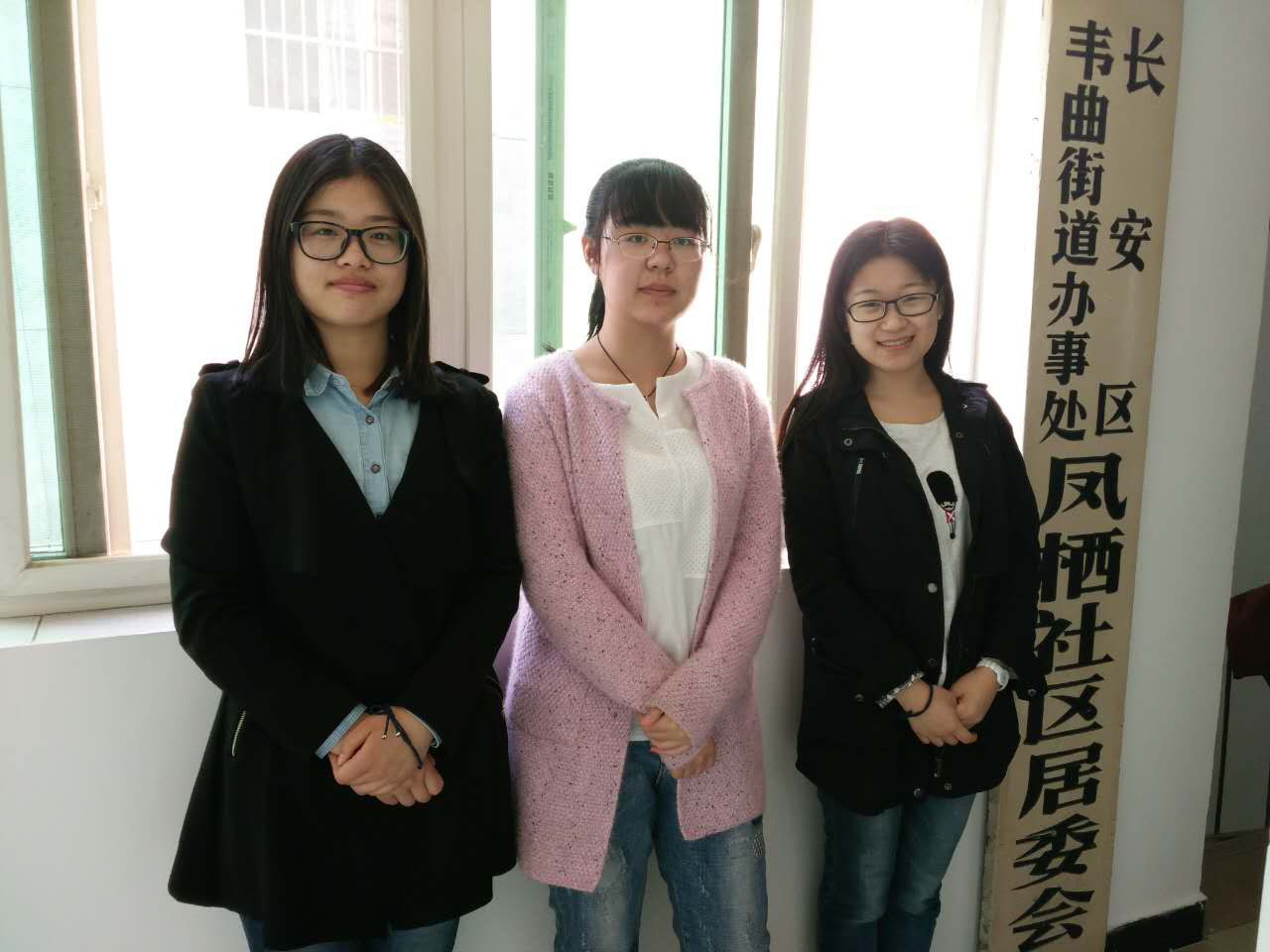 刘贝贝:嗯,变化有三个方面吧!首先,我觉得是生活上的变化,不知道是谁说,七天可以养成一个习惯,我们实习了一个多月,这让我们的生活变得非常规律,尤其体现在作息规律上,熬夜什么的基本已经木有了;其次,是认知上的变化,在电视媒体中塑造的社区工作人员形象大部分都是非常热心肠的大妈。她们用热情去为社区居民服务。但是在实习了以后我发现社区的工作人员,他们有着丰富的社区工作经验。他们的成员有年轻化、高学历、专业化的特点和趋势。这让我对社区的发展有了更加坚定的信心。