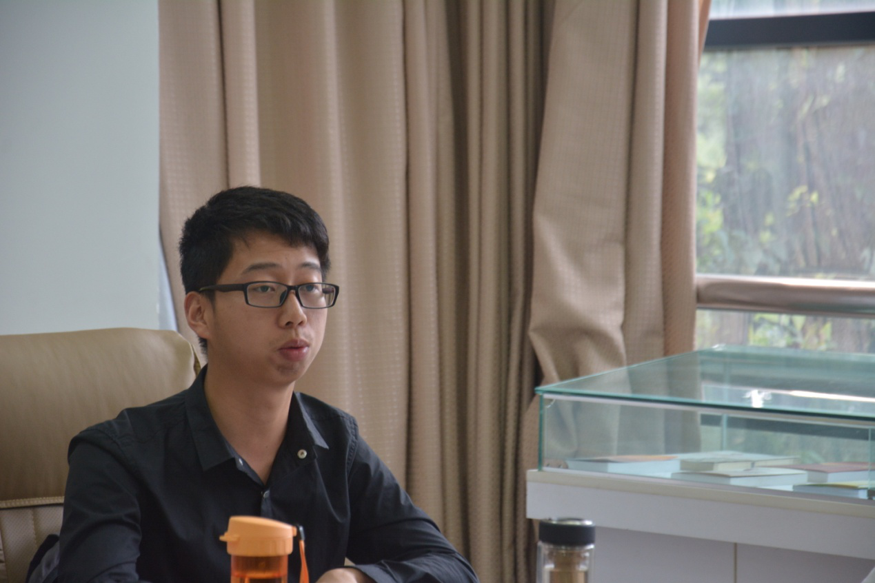 党务工作组组长、研究生会副主席艾强同学向宁波诺丁汉大学的同学们介绍了我院党务党建工作的开展情况,他主要介绍了党务工作组成立的背景和原因,介绍了党务工作组的职责和学生党员的发展情况。他提到在党务工作组成立的短短一年内,完善了党员发展规范,丰富了组织发展方式,成立了党务微信平台,都取得了不错的效果,受到了大家的好评。