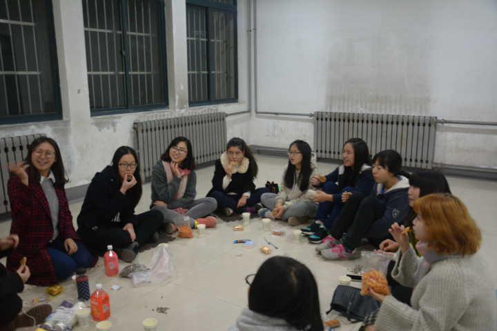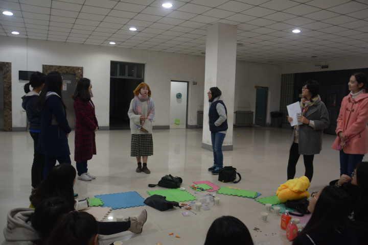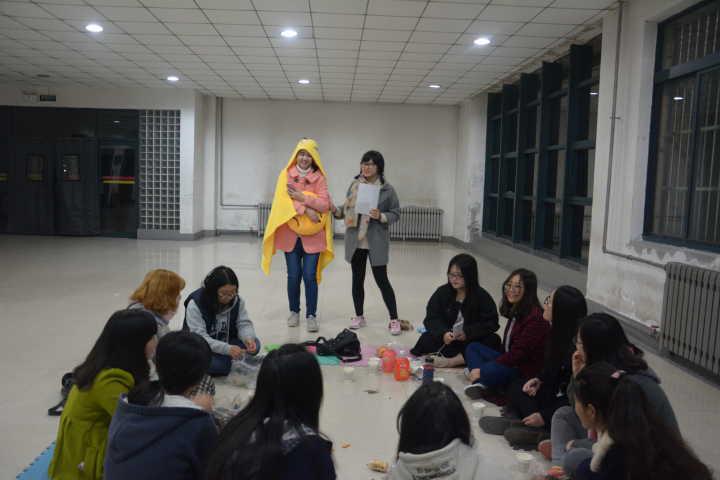 活动开始前,大家先进行了自我介绍。大家的自我介绍都非常有特色,说到特点,有人爆出了自己的体重,有人说了自己的头发,学姐还拿出了她可爱的滑稽套装。