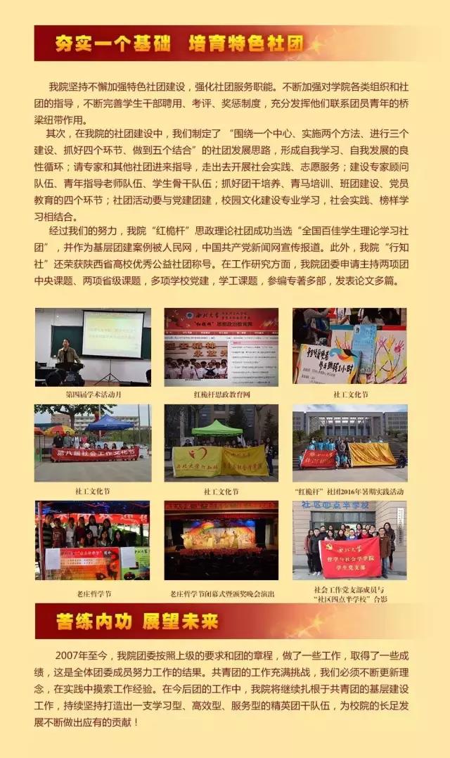 在共青团西北大学第二十次团代会召开之际,学校各基层共青团组织对近年来的工作进行了梳理和小结。让我们一起回顾共青团必赢242net官网(哲学与社会学学院)委员会的近年工作。