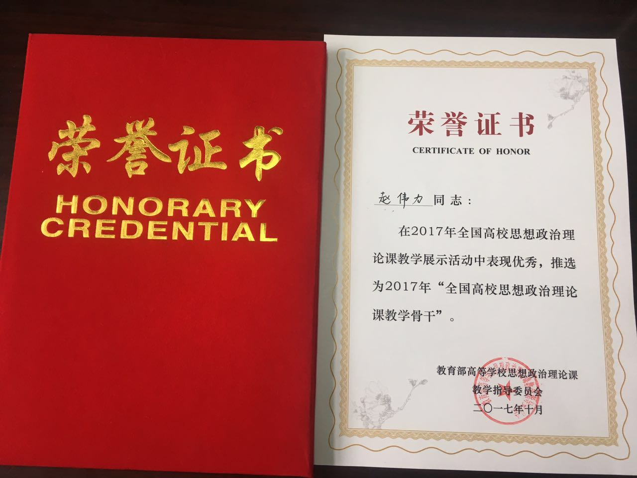 马克思主义学院赵伟力老师获得 “全国高校思想政治理论课教学骨干”称号