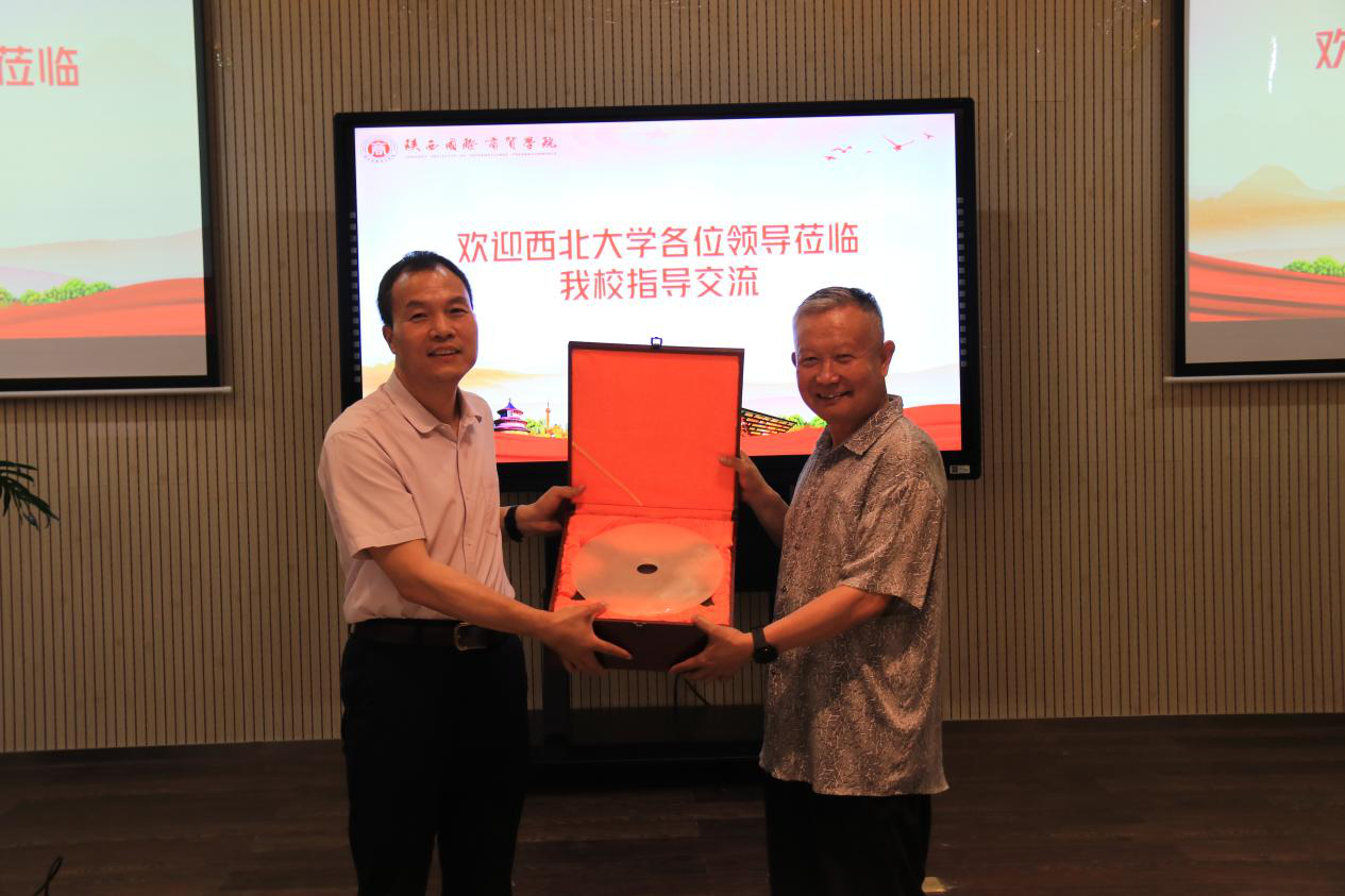 吕建荣和王正斌代表两校互赠了礼物。学院常务副院长王强同陕西国际商贸学院马克思主义学院副院长任静签署了对口帮扶框架协议。