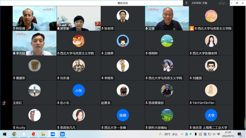 王强对报告内容进行了总结回顾,用“视野宽阔”“学理性强”“内容丰富”“语言鲜活”“站位极高”“情怀很深”等六个关键词进行概括。他指出,宋学勤的报告是我校持续推进思政课线上教学创新的有益尝试,是我校思政课“一人主讲,多人辅导”教学模式改革的再次实践,既实现了思政名师大家进课堂,将党的最新理论成果及时融入思政课堂,也实现了专家专题讲座和教师系统讲授的有效结合,有利于提升思政课的思想性、理论性、亲和力和针对性,增强学生的获得感。