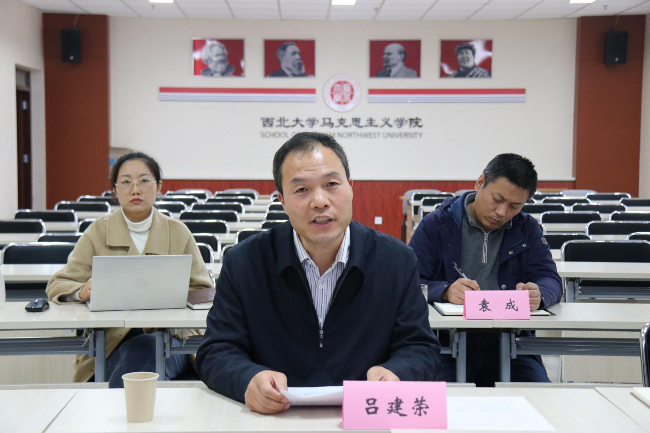 吕建荣在总结讲话中指出,六位专家的发言立意高远、视角独到、观点新颖、情真意切,为多维度、多视域开展党的二十大精神学习、研究、阐释,产出高水平研究成果,提供了思路,也为学校高质量开展党的二十大精神学习宣传贡献了智慧。他就学院下一步学习好、宣传好、贯彻好党的二十大精神提出四点要求:第一,学深悟透是基础。要组织全体思政教师、党员干部、研究生,集中、深入、反复开展党的二十大精神专题学习研讨,先学一步、学深悟透。要聚焦“五个牢牢把握”要求,深入领会党的二十大精神的丰富内涵、精神实质、实践要求。第二,研究阐释是关键。他建议思政课教师从理论维度、实践维度、陕西维度三个方向开展研究,积极申报各级党的二十大研究专项项目。第三,立德树人是根本。他要求学院系统推进党的二十大精神“三进”工作,组织好全院、各教研部、各课程的思政课教师集体备课会;配合学校成立好党的二十大精神理论宣讲团,向校内更多的师生开展宣讲。第四,成果产出是检验。一是研究成果,申报立项一批阐释党的二十大精神国家、陕西、学校重大专项,产出一批高水平研究论文,在主流媒体刊发高水平研究文章;二是育人成果,申报立项一批教学研究项目、产出一批高质量教学成果,通过用党的创新理论武装学生头脑、指导育人实践,不断增强大学生对思政课的获得感,以新思想指导和培育时代新人;三是学科建设成果,通过整合校内资源“开门办马院”,抢抓“中共党史党建学”一级学科建设机遇,积极做好一级博士点申报工作,为不断开辟马克思主义中国化时代化新境界贡献西大力量。