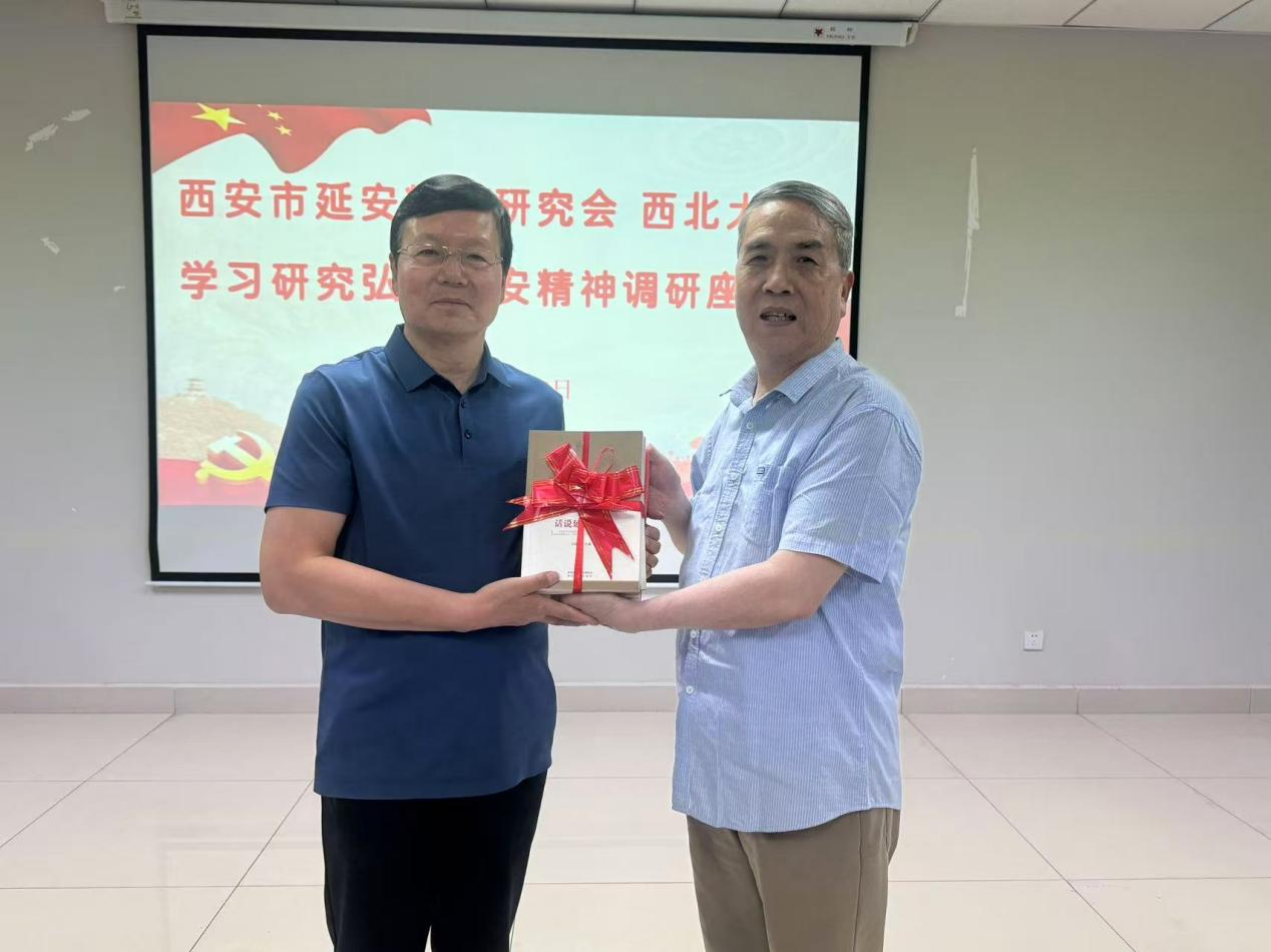 随后,双方就未来合作形式、合作内容等进行了座谈交流。延安精神与党的建设研究院向西安市延安精神研究会捐赠了《中共中央在延安十三年史》《话说延安精神》等书籍。