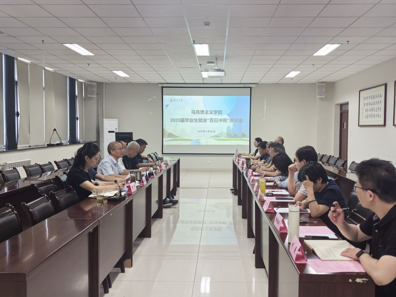 5月28日下午,我院举办2025届毕业生就业“百日冲刺”座谈会。我院领导班子成员,研究生导师,学工、行政和党务有关工作人员参加会议,会议由院长何博主持。